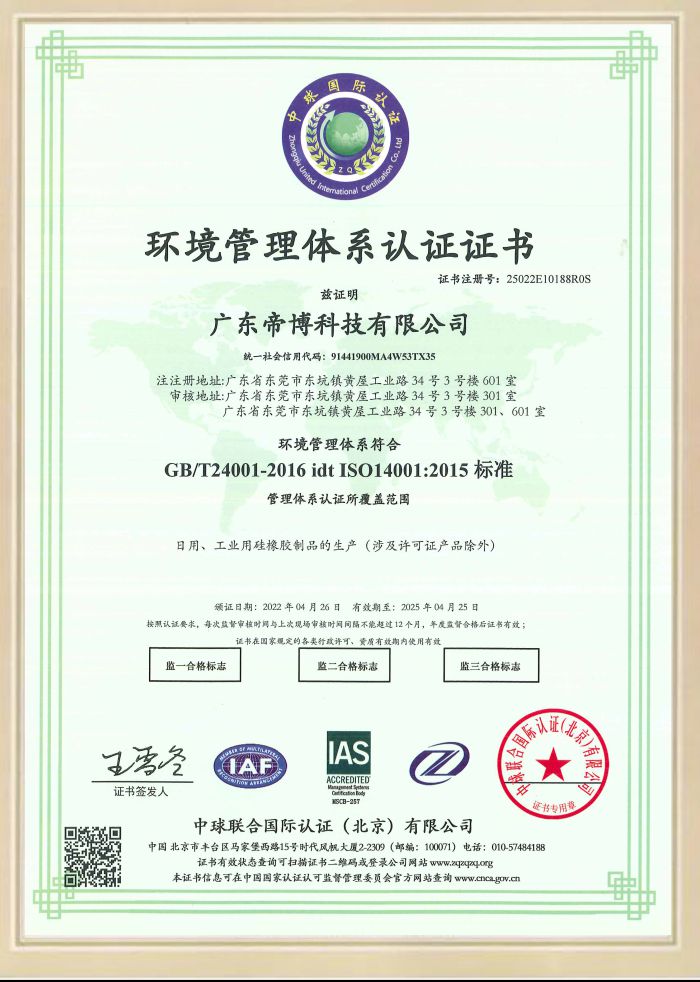 廣東帝博科技有限公位于2019年起施行每年檢測認證報告,由于硅膠制品行業(yè)屬于環(huán)保安全行業(yè),客戶的需求以及反饋都決定我們的實力,目前我司已認證ISO9001、ISO14001、ISO45001、迪士尼認證、FDA、ROHS、LFGB、CPC等一系列檢測認證